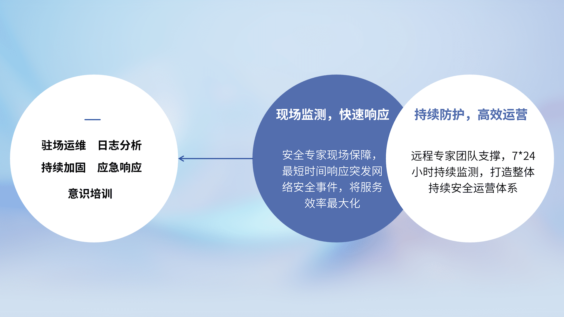 7X24小时持续监测安全事件,保持安全策略有效性,降低资产脆弱性风险,,,精准拦截黑客攻击,,,,减少被黑客利用的机会,,第一时间遏制,,,,降低损失。。。